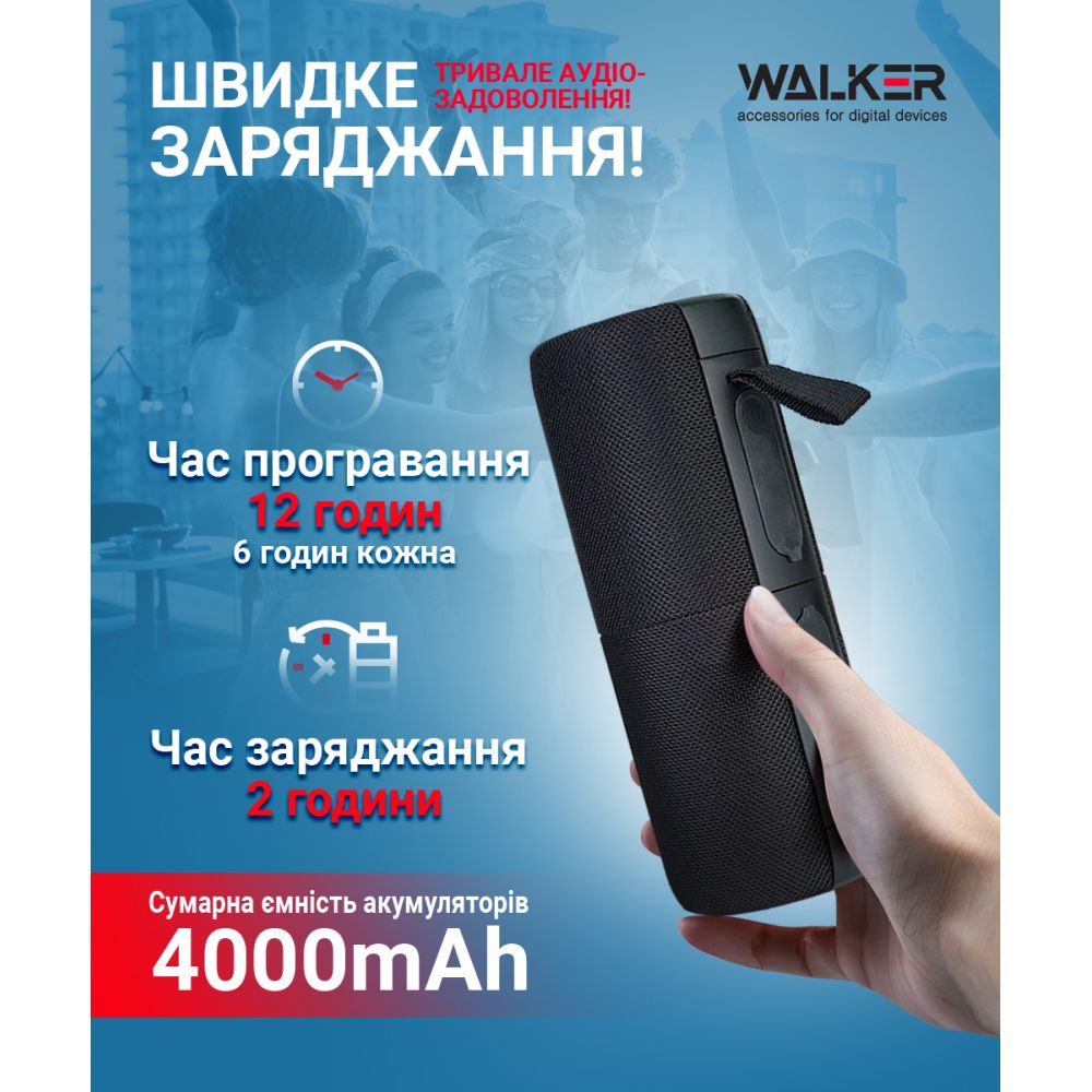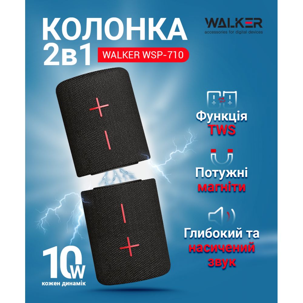 Портативная колонка 2в1 WALKER WSP-710 – это впечатляющее устройство, сочетающее в себе передовые технологии и высокое качество звука в компактном и удобном корпусе.