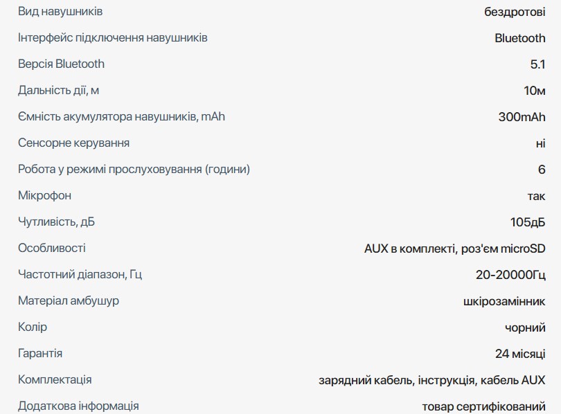 Емкость аккумулятора наушников составляет 300mAh, что гарантирует работу в режиме прослушивания до 6 часов.