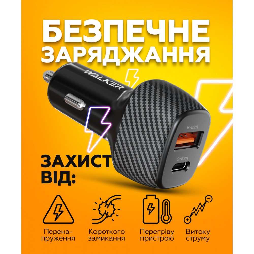 Автомобильное зарядное устройство WALKER WCR-35 (QC3.0 - 18W, PD -30W, 48W Max) black - 919213