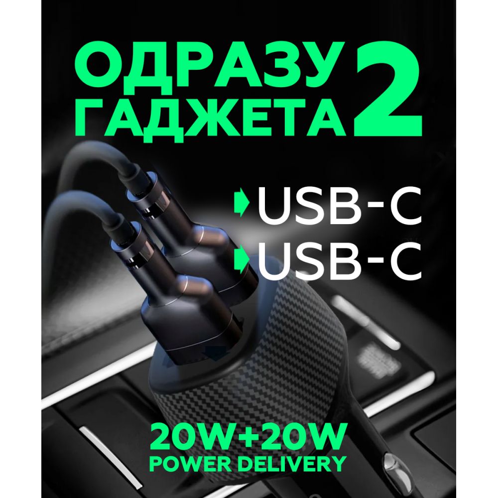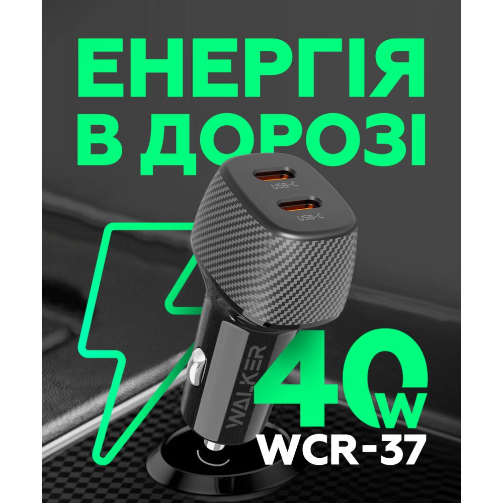 Автомобильное зарядное устройство WALKER WCR-37 (PD -20W, PD - 20W, 40W Max) black - 919214