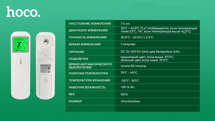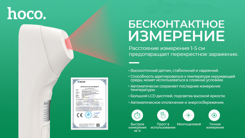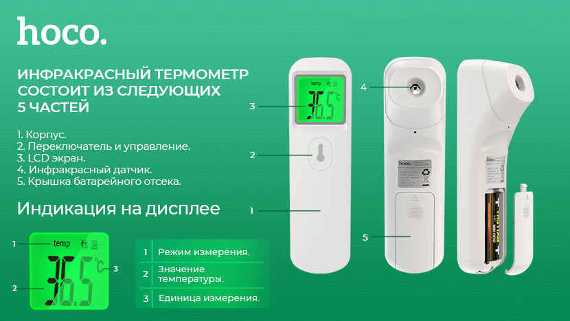 Безконтактний інфрачервоний термометр HOCO YQ-01MD - 561789