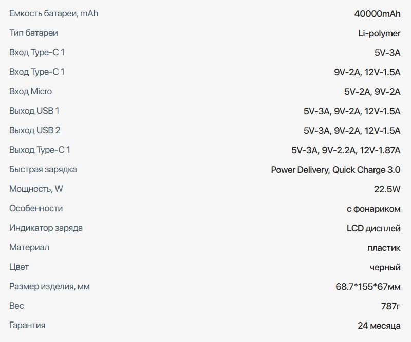 Черный цвет повербанка добавляет ему стильности и элегантности. Он легко сочетается с любым интерьером и станет незаменимым аксессуаром для вашего гаджета.